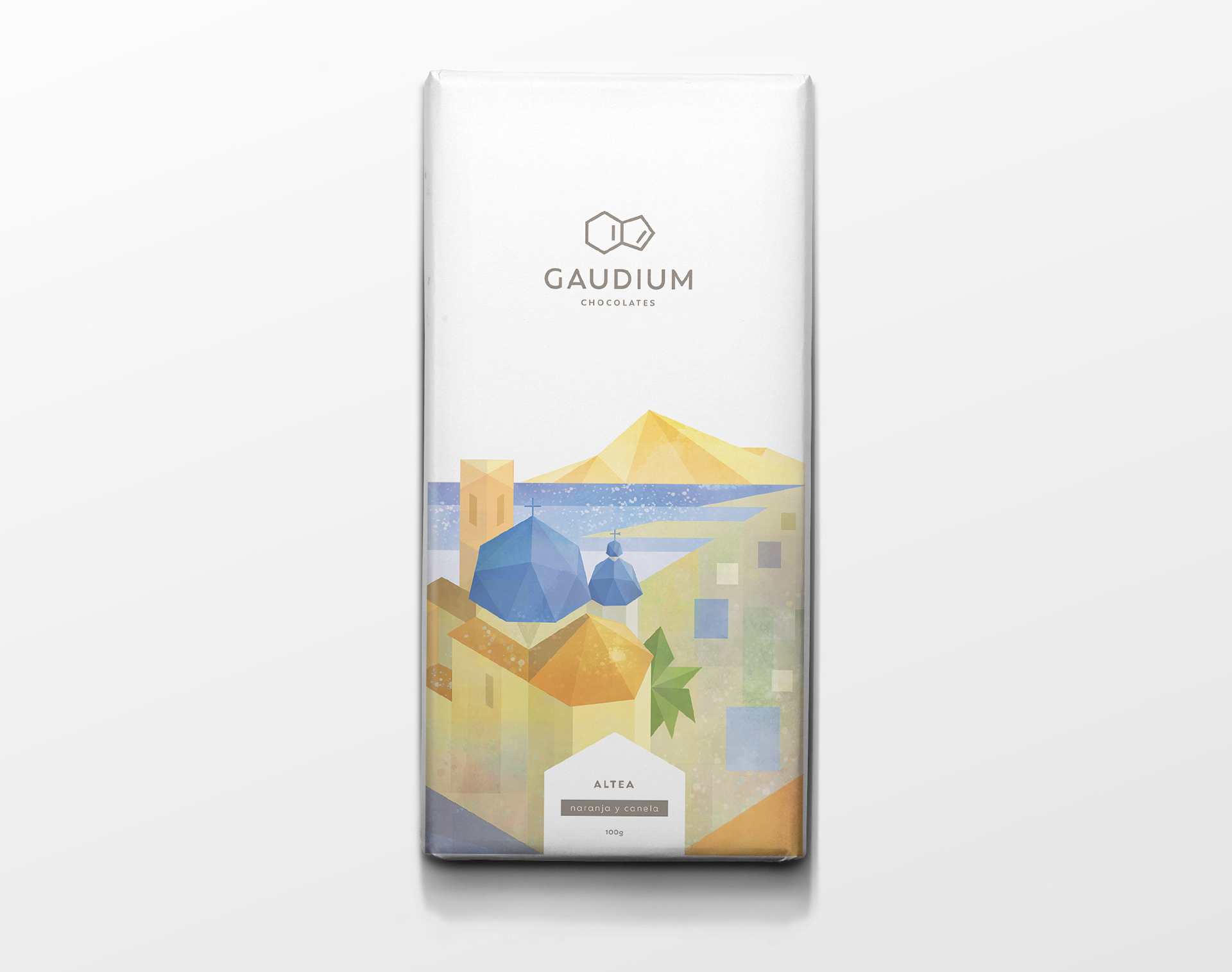 Diseño completo de una marca de chocolate joven, nacida en España y con un arraigado carácter mediterráneo. Su naming, GAUDIUM, viene del verbo latino gaudere, que significa gozo, disfrute, placer, alegría, júbilo o regocijo. Flexible, su identidad se adapta a cualquier formato. El símbolo está basado en la propia composición química del chocolate: la teobromina, al igual que sus colores, propios del cacao.